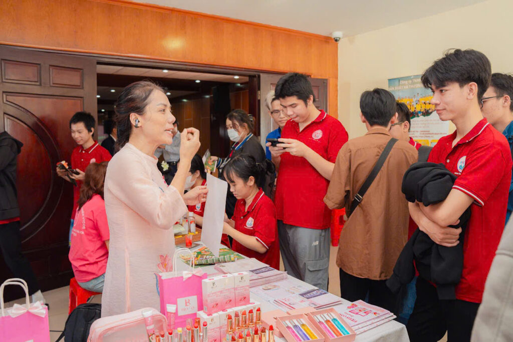 Bên cạnh gian hàng trưng bày sản phẩm, Bio-Q còn tổ chức một buổi workshop làm son thu hút đông đảo sinh viên tham gia. Dưới sự hướng dẫn tận tâm của chuyên gia tại phòng thí nghiệm từ Bio-Q, các bạn đã được tự tay pha trộn, đổ khuôn và tạo nên những thỏi son độc nhất vô nhị. Cám giác tự tay tạo ra một sản phẩm cá nhân đã mang đến nhiều niềm vui và hào hứng cho người tham dự.