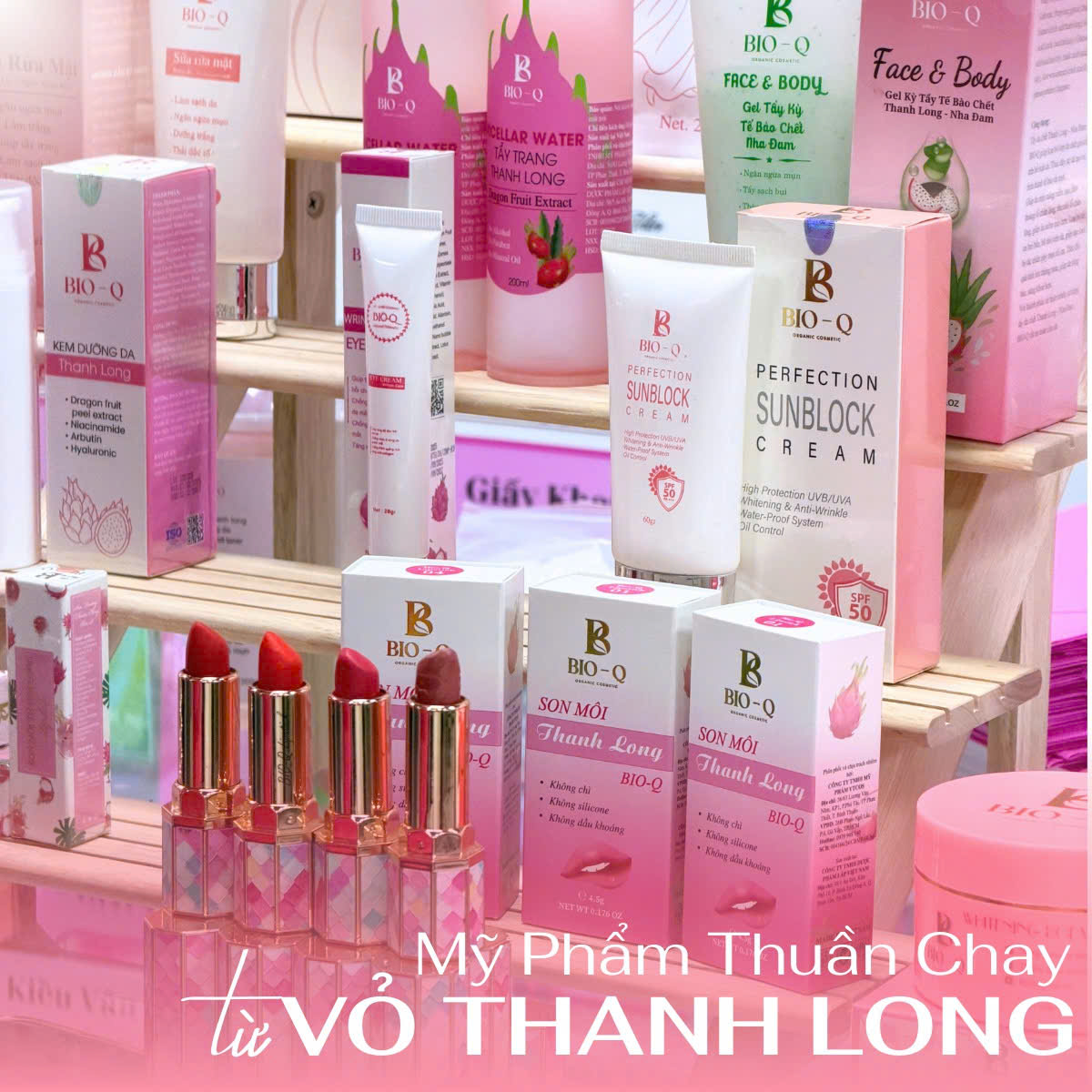 Mỹ phẩm thuần chay BIO-Q không chỉ là lựa chọn làm đẹp an toàn mà còn là sự kết hợp hài hòa giữa triết lý thuần chay và các chiết xuất thực vật giá trị như chiết xuất từ vỏ thanh long, giúp bạn nuôi dưỡng làn da khỏe mạnh, bền vững và tôn trọng tự nhiên.