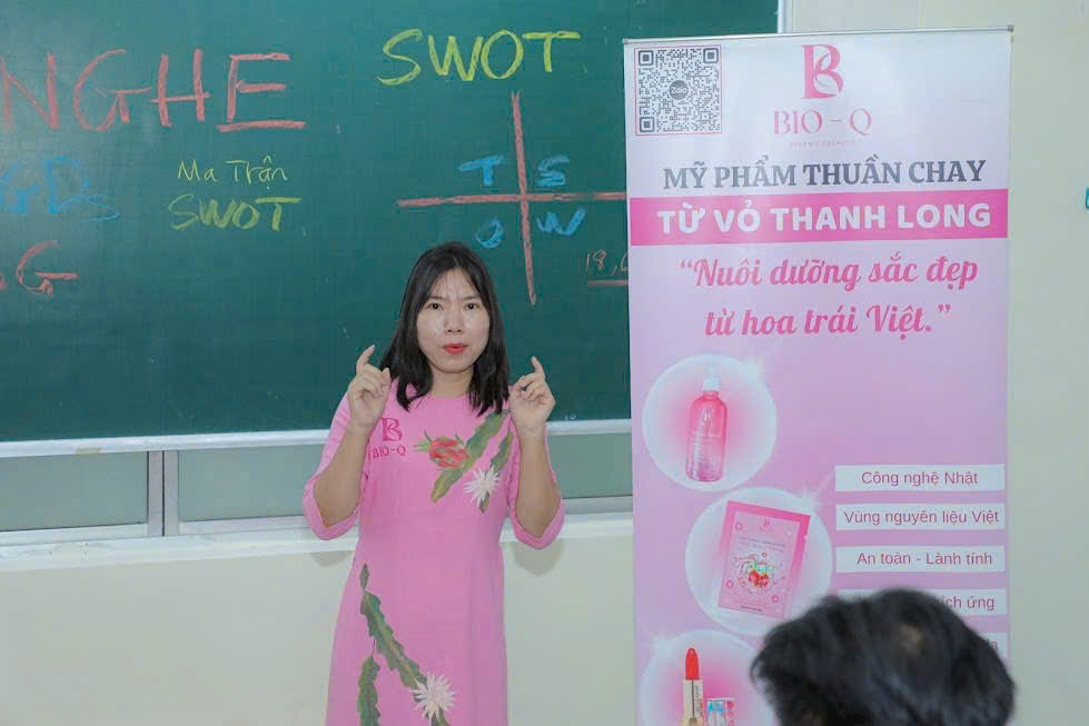 Một trong những điểm nhấn nổi bật của chương trình là khóa học mang tên “Design Thinking” do chị Đoàn Thị Kiều Vân, CEO thương hiệu mỹ phẩm thuần chay BIO-Q, dẫn dắt. Khóa học đã mang đến cho các sinh viên những phương pháp sáng tạo và đổi mới, giúp họ áp dụng thành công trong việc phát triển dự án khởi nghiệp.